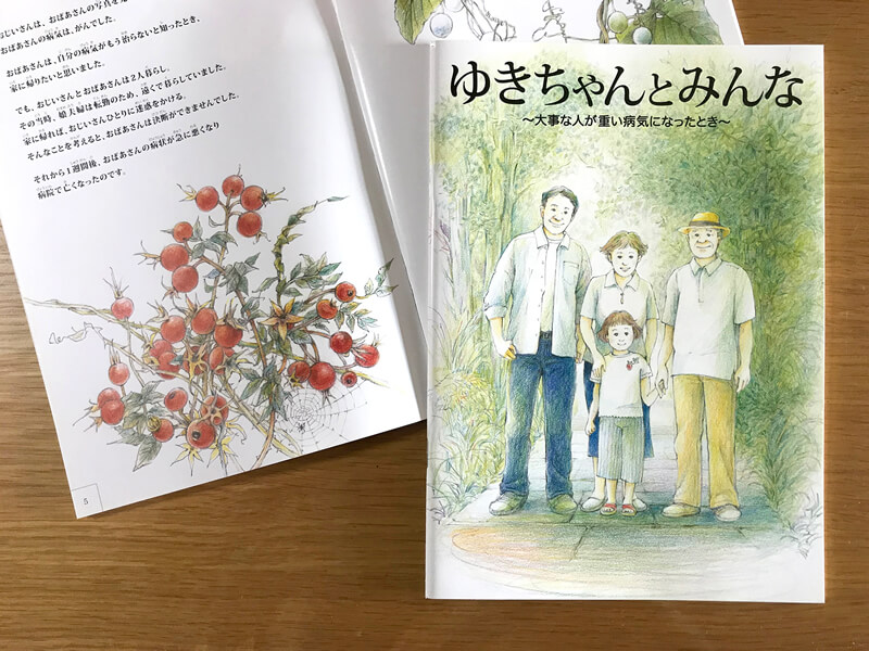 お母さんは看護師でした。「もし、この病気がよくなるのなら、同じ病気の人の話し相手になりたい」と言っていたそうです。この絵本は、家族との病院との連絡ノート、手帳、便せんに書き残された手記をもとにつくられています。